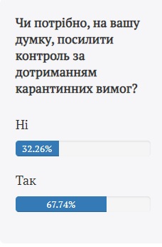 На сайті "Дзеркала" завершилося опитування "Чи потрібно, на вашу думку, посилити контроль за дотриманням карантинних вимог?".