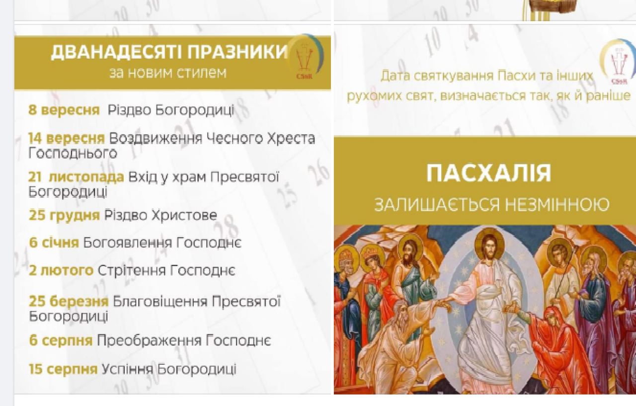 Як повідомляли, з 1 вересня 2023 року Українська Греко-Католицька Церква в Україні переходить на новий стиль для нерухомих свят із збереженням чинної Пасхалії.