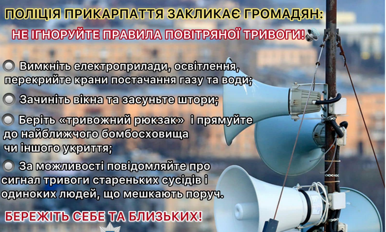 Поліція Івано-Франківщини вкотре закликає не нехтувати сигналами "Повітряної тривоги".
