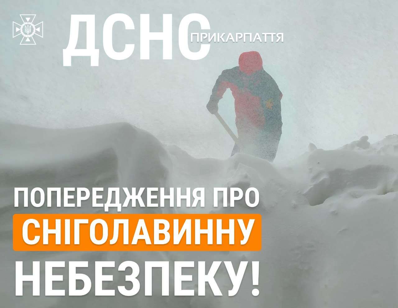 08 січня, у зв´язку зі снігопадами, у високогір´ї Івано-Франківської області очікується значна сніголавинна небезпека. (3 рівень)