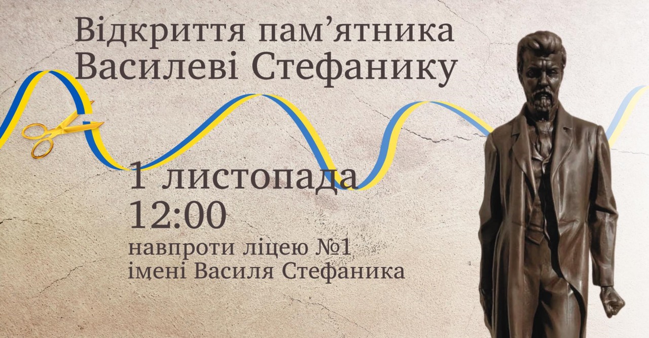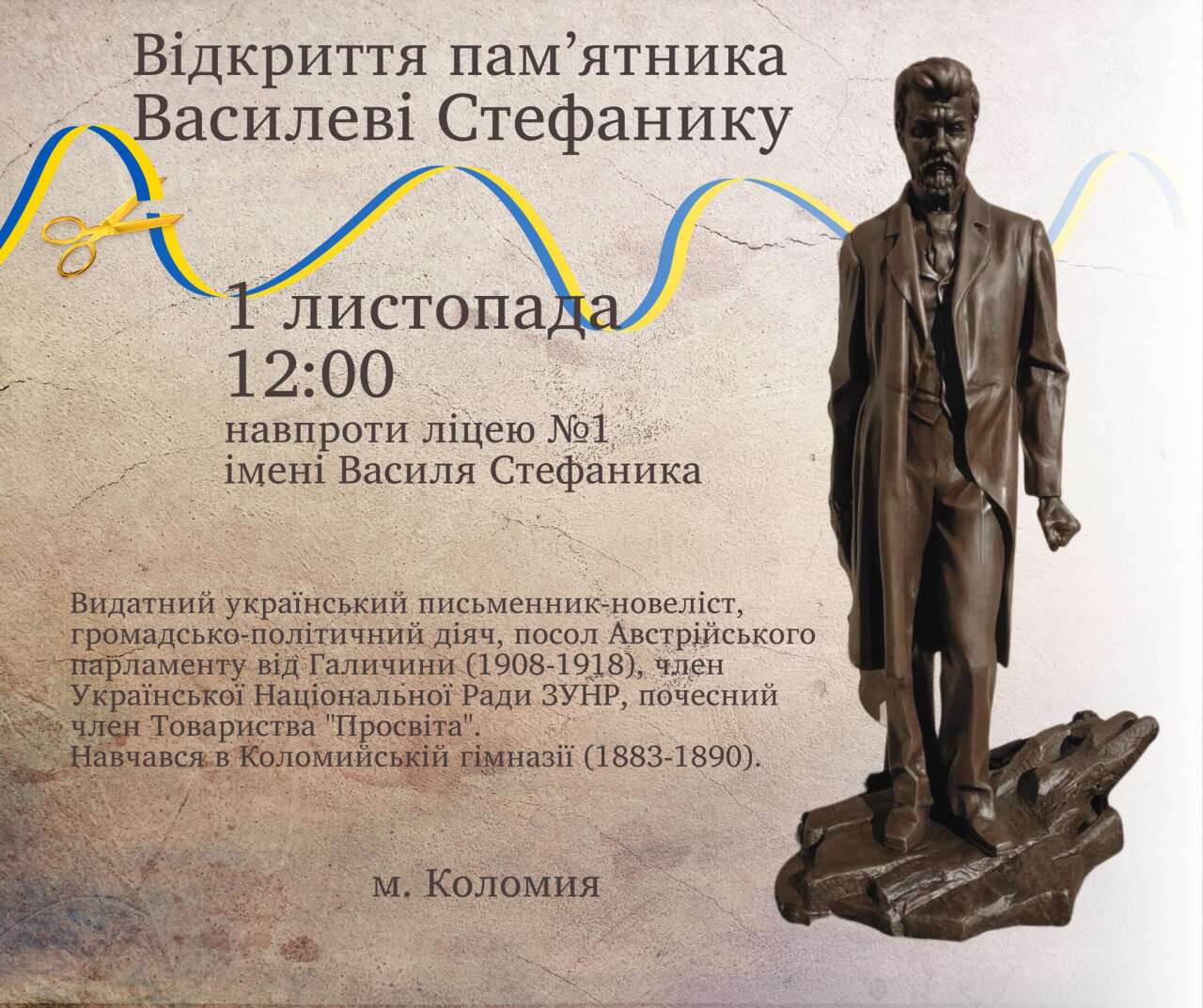 Коломиян запрошують на урочисте відкриття пам'ятника видатному українському письменнику-новелісту, громадсько-політичному діячеві та послові Австрійського парламенту від Галичини ВАСИЛЕВІ СТЕФАНИКУ.