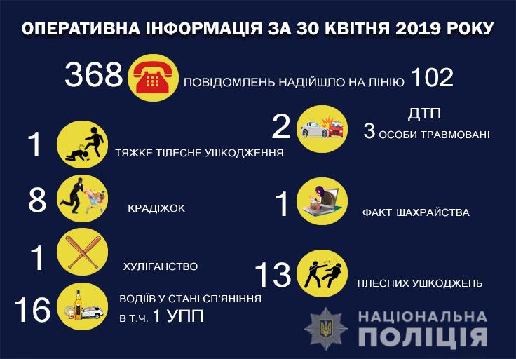 Про це інформує обласна поліція. Оперативну інформацію за 30 квітня можете переглянути у зображенні нижче: