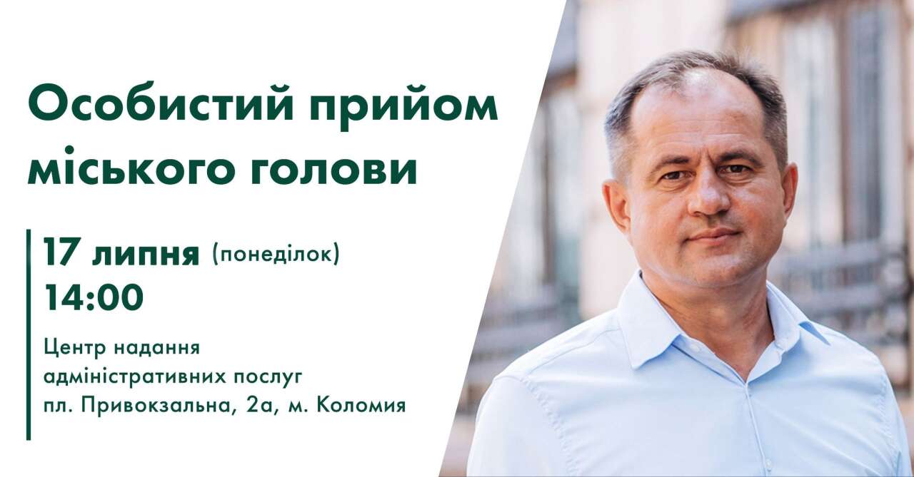 17 липня о 14 годині у приміщенні Коломийського ЦНАПу (пл. Привокзальна, 2а/1, І поверх) відбудеться прийом громадян з особистих питань у міського голови Богдана Станіславського.