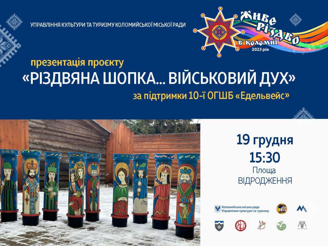 Ця шопка зроблена з військових «артефактів» від нашої 10 окремої гірсько-штурмової бригади «Едельвейс». А виготовили її управління культури та туризму Коломийської міської ради і викладачі та студенти Коломийського педагогічного фахового коледжу (відділення образотворчого мистецтва).