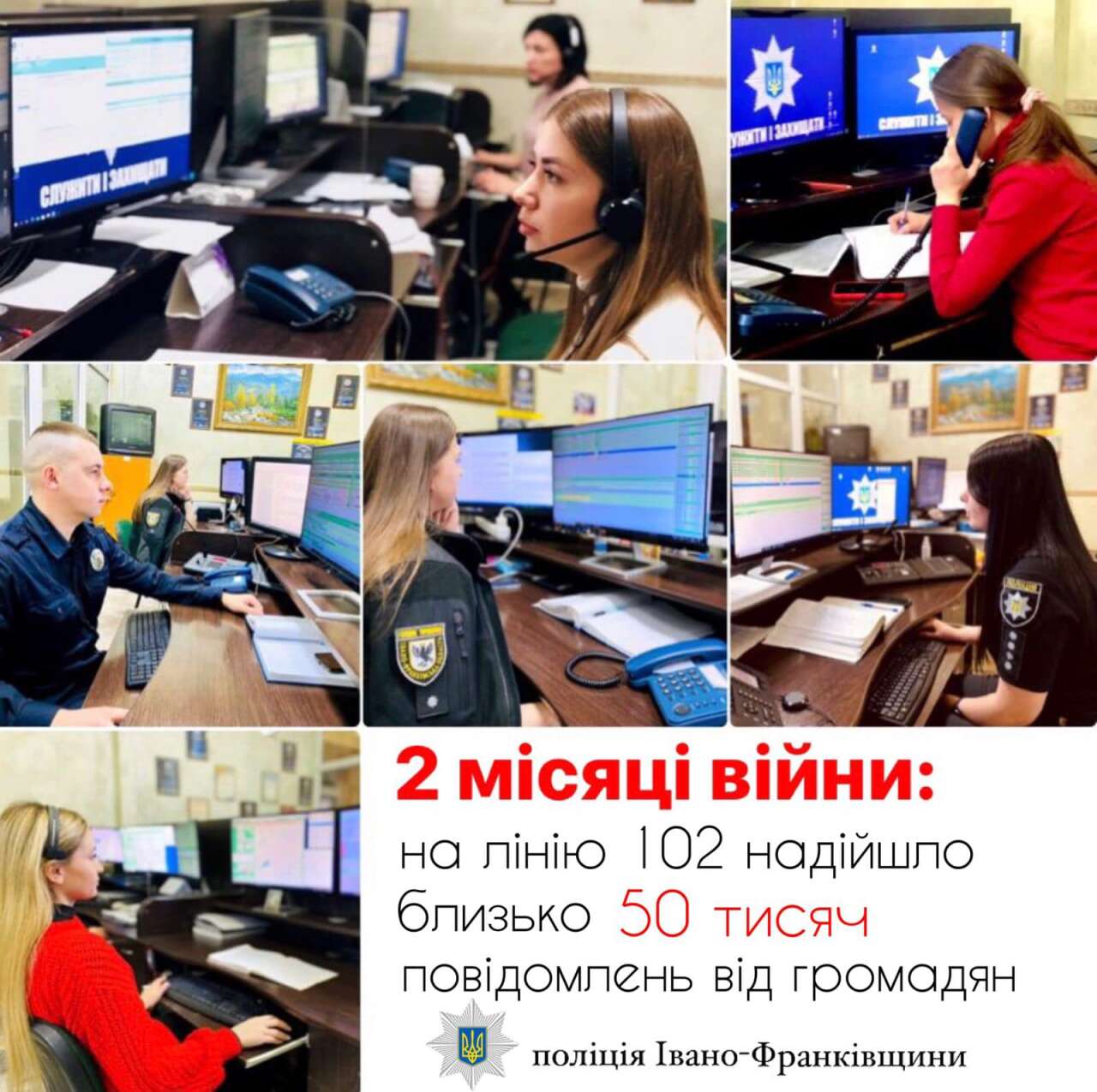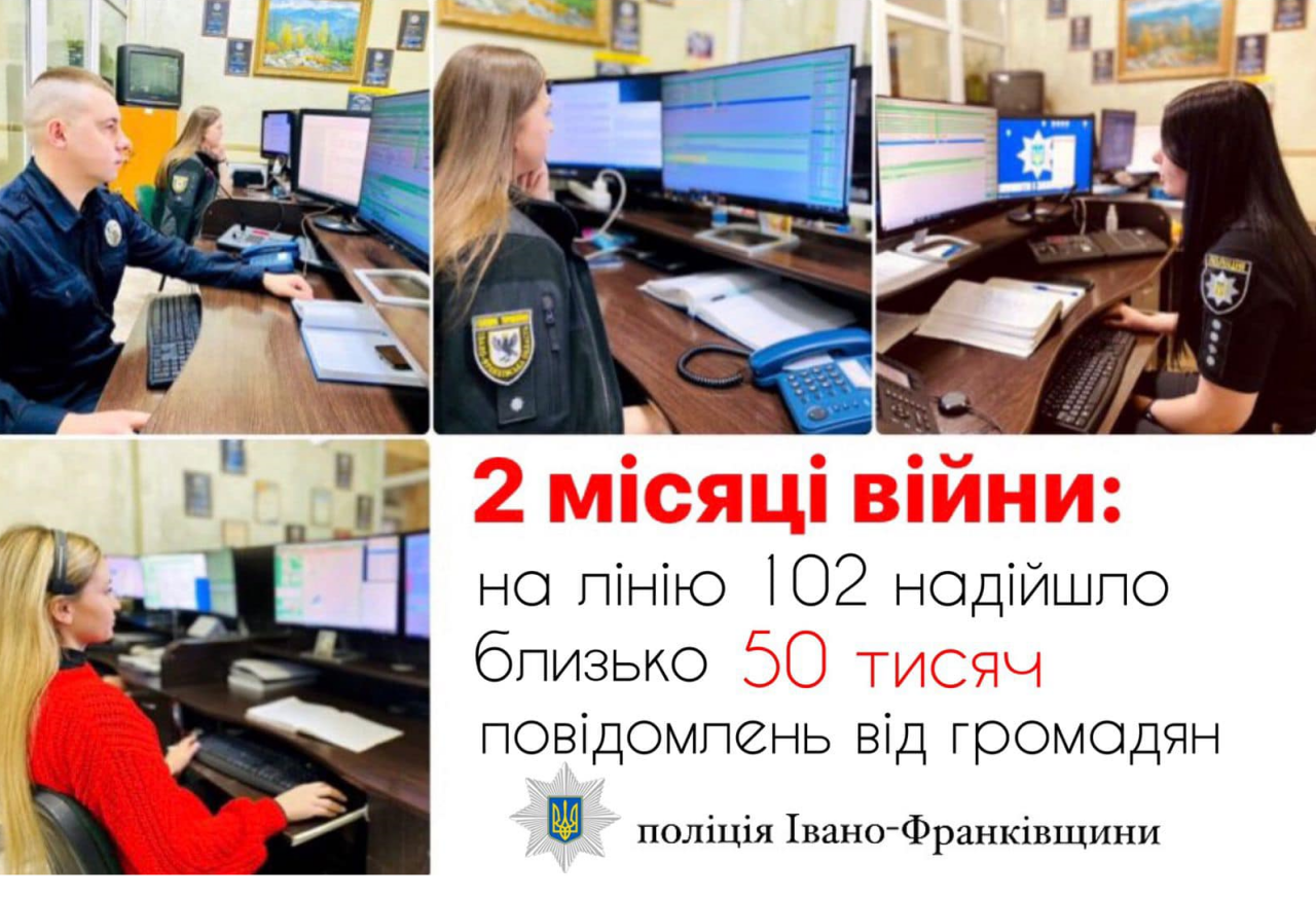 Від початку воєнного стану кількість звернень від громадян на спецлінію «102» суттєво збільшилася. Оператори служби «102» поліції Івано-Франківщини тепер в середньому приймають близько 500 дзвінків щодоби, це на кілька сотень більше, ніж було у мирний час.