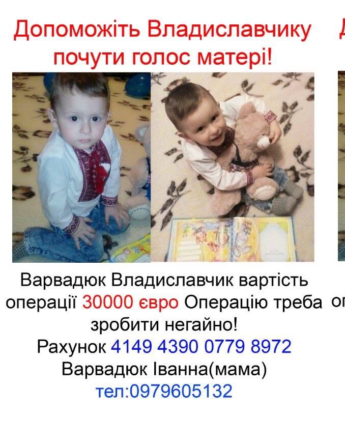 Дворічний Владик Варвадюк з села Баня-Березів потребує вашої допомоги.