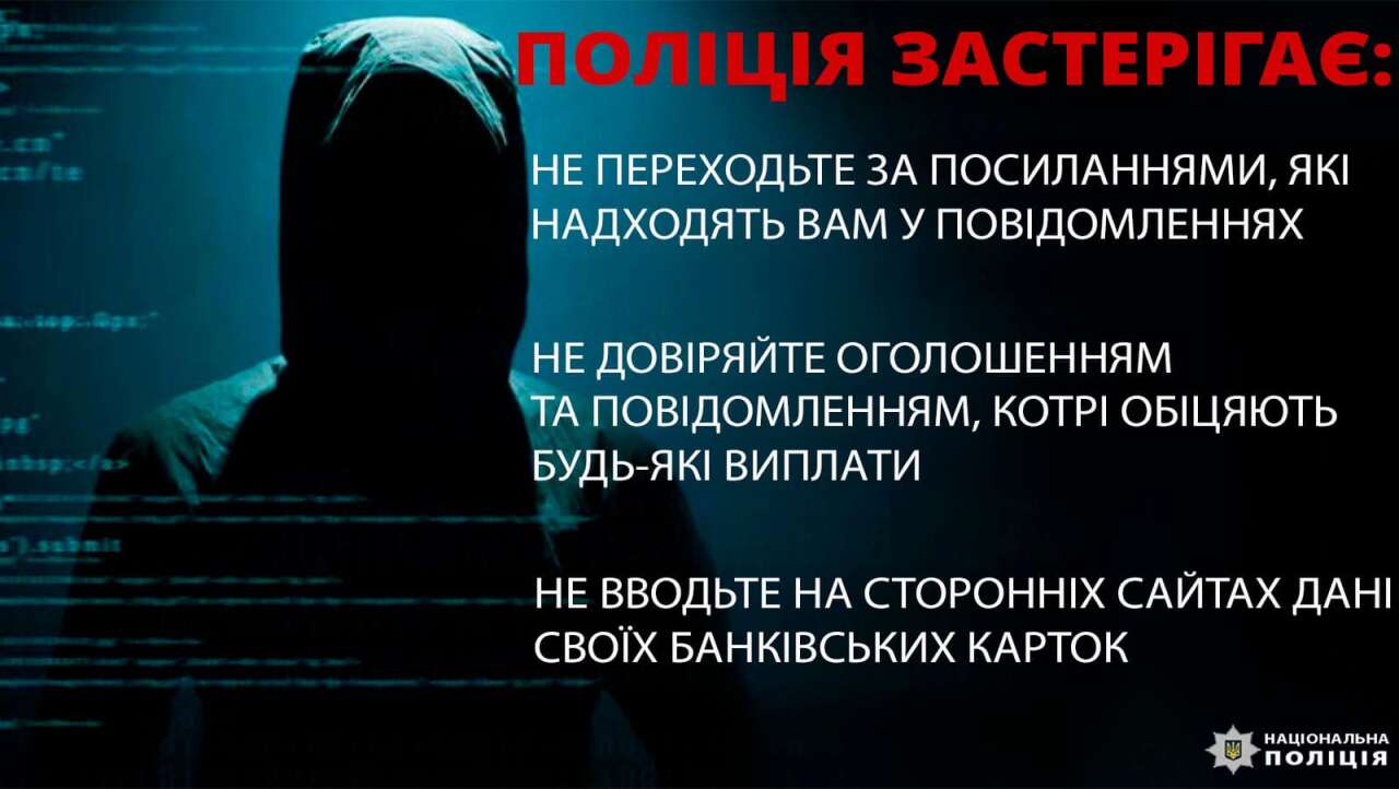 - не довіряйте оголошенням та повідомленням, які обіцяють будь-які виплати. Не вводьте на сторонніх сайтах дані своїх банківських карток;