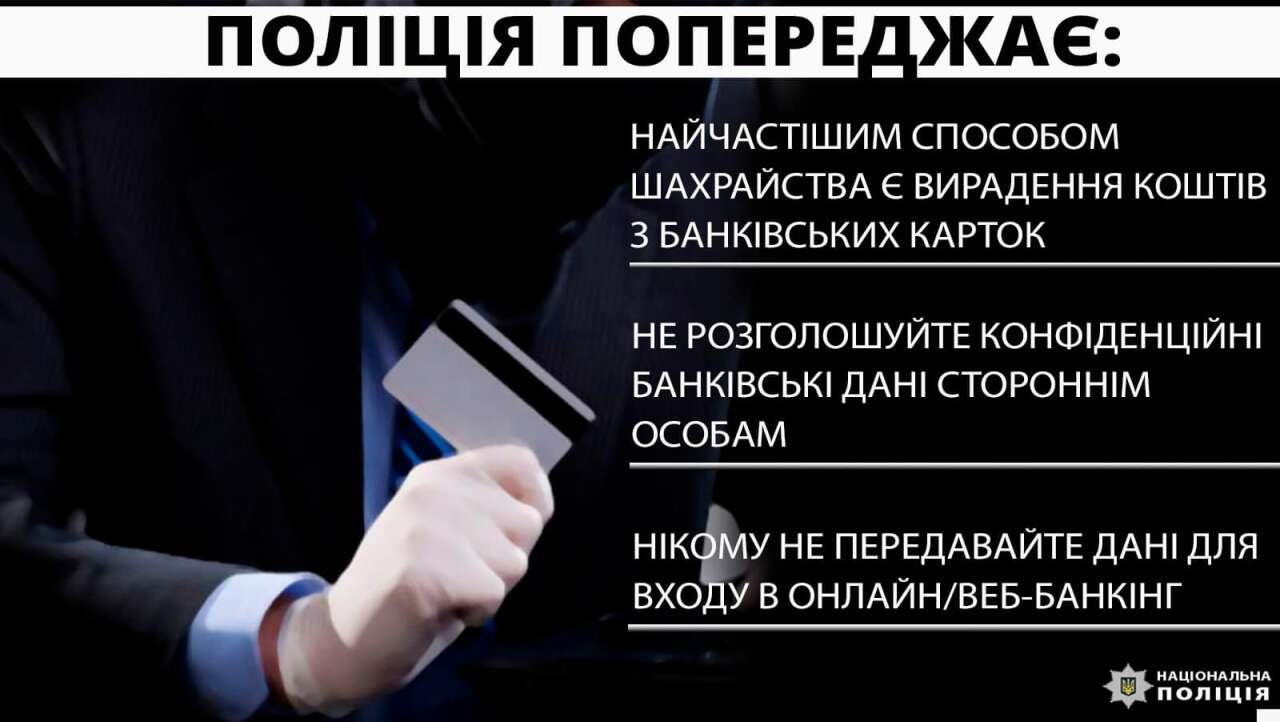 ніколи не повідомляйте нікому дані своєї картки та коди, які надходять вам на телефон;