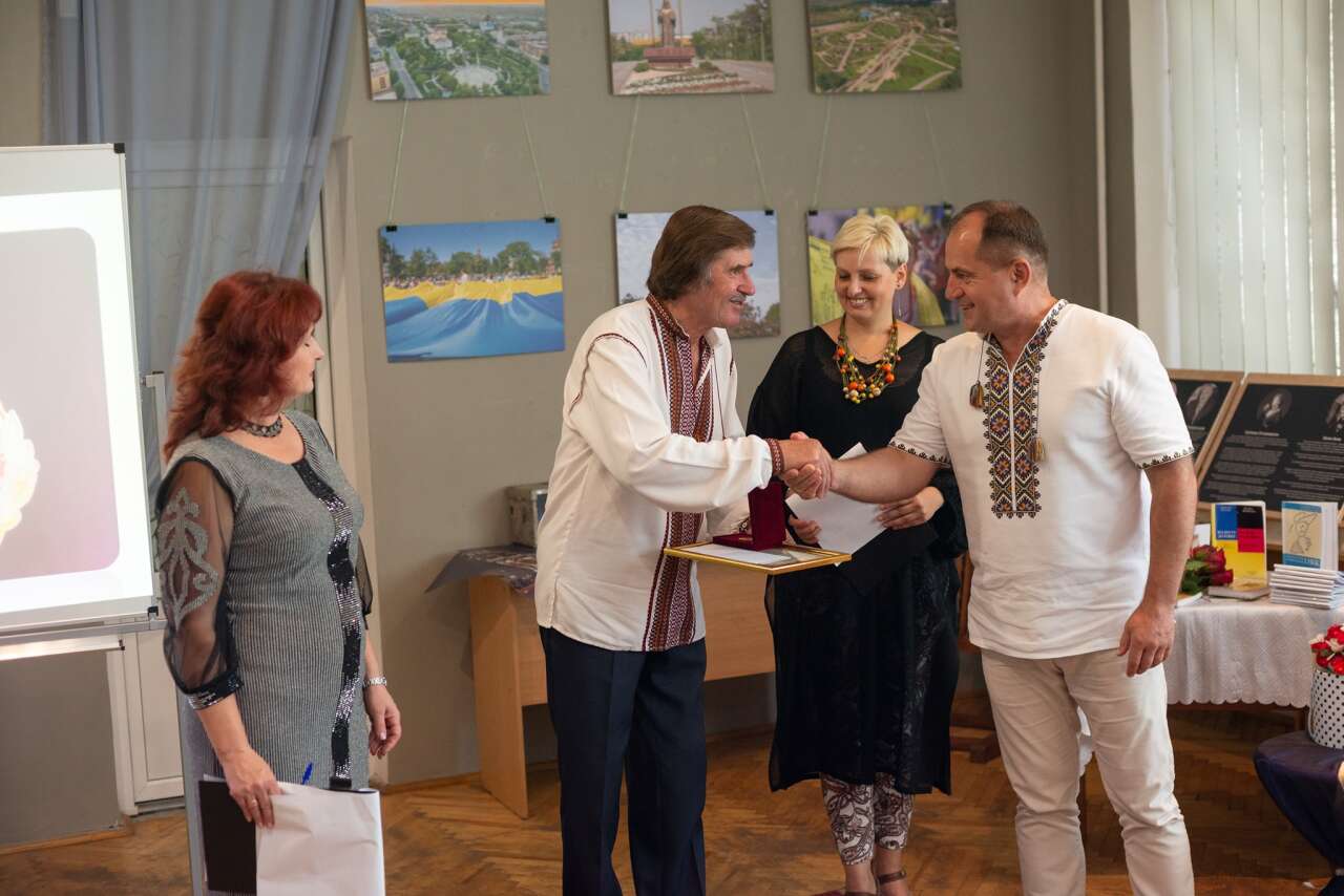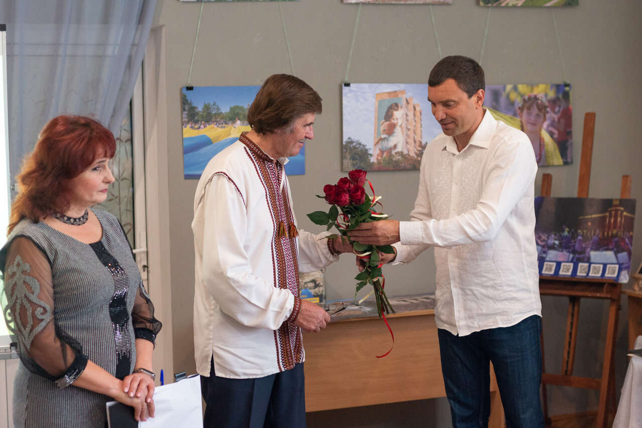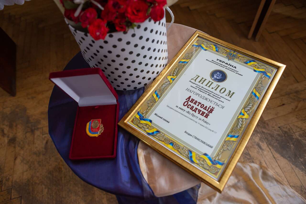 Міський голова Богдан Станіславський вручив лауреату премію, яку пану Анатолію присудили за збірку «Від Пруту до Рейну».