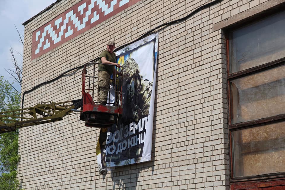 Бійці 10 бригади встановили патріотичний білборд у селищі на Сході України. ФОТО
