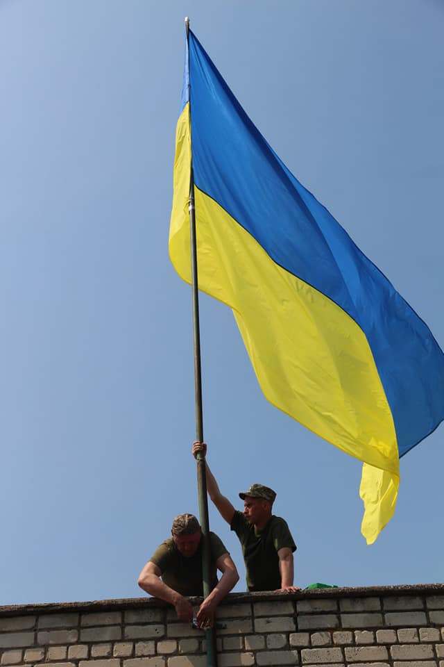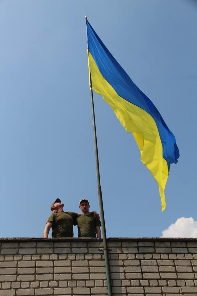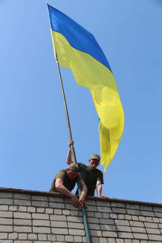 "Прапор, який чудово видно з тимчасово окупованого Слов’яносербська - зайвий раз нагадує мешканцям цього містечка, що все буде Україна, ми повернемось!" - йдеться у дописі.