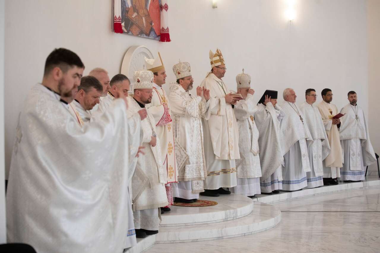 З Главою Церкви співслужили: Апостольський нунцій в Україні архиєпископ Вісвальдас Кулбокас, єпископ-помічник Києво-Житомирської дієцезії Олександр Язловецький, єпископ-помічник Київської архиєпархії владика Йосиф Мілян, куріальний єпископ Києво-Галицького Верховного Архиєпископа Степан Сус та духовенство Київської архиєпархії.
