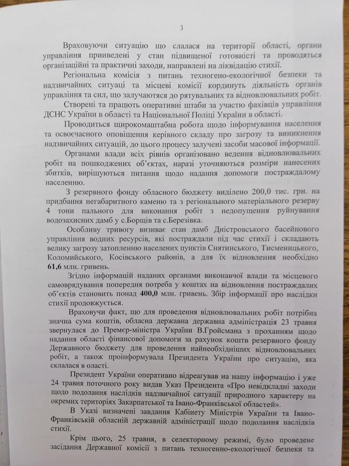 Темою зібрання стала ліквідація наслідків стихійного лиха – масштабних паводків, які затопили понад 3300 дворів на Прикарпатті.