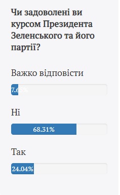 На нашому сайті завершилося опитування "Чи задоволені ви курсом Президента Зеленського та його партії?".