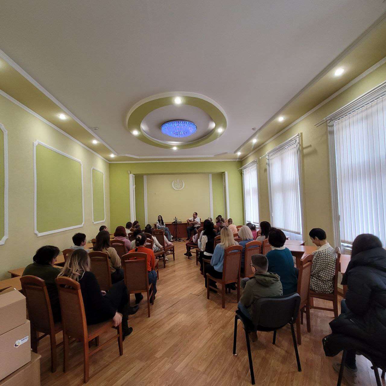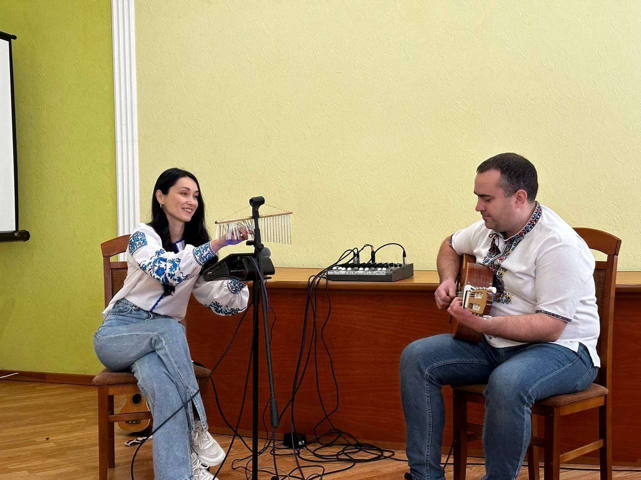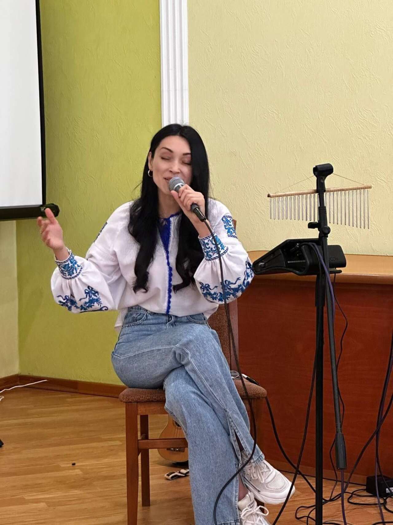 “Зустріч проходила у форматі спілкування, перемезаного з виконанням #Карпатською_Мавкою ( як її називають) пісень зі свого репертуару. І, навіть разом з акторами Театру ! Було цікаво, пізнавально ! “ – повідомляють на сторінці театру у Facebook.