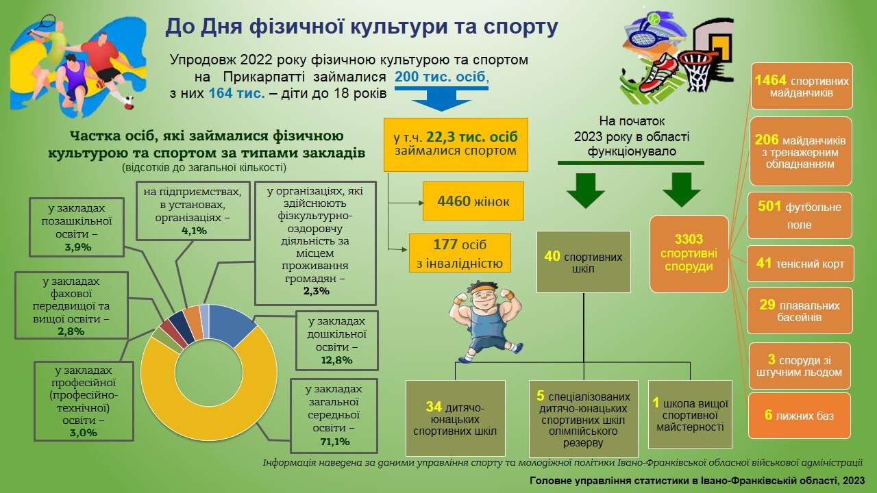 Головне управління статистики в Івано-Франківській області підготувало нфографіку "До Дня фізичної культури і спорту України".