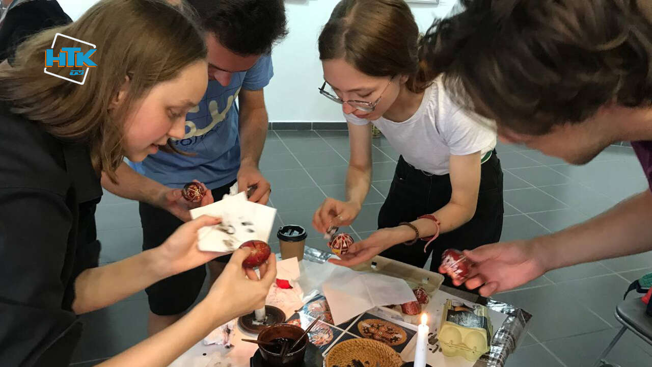 Хлопці та дівчата облаштовують прихисток для вимушених переселенців.