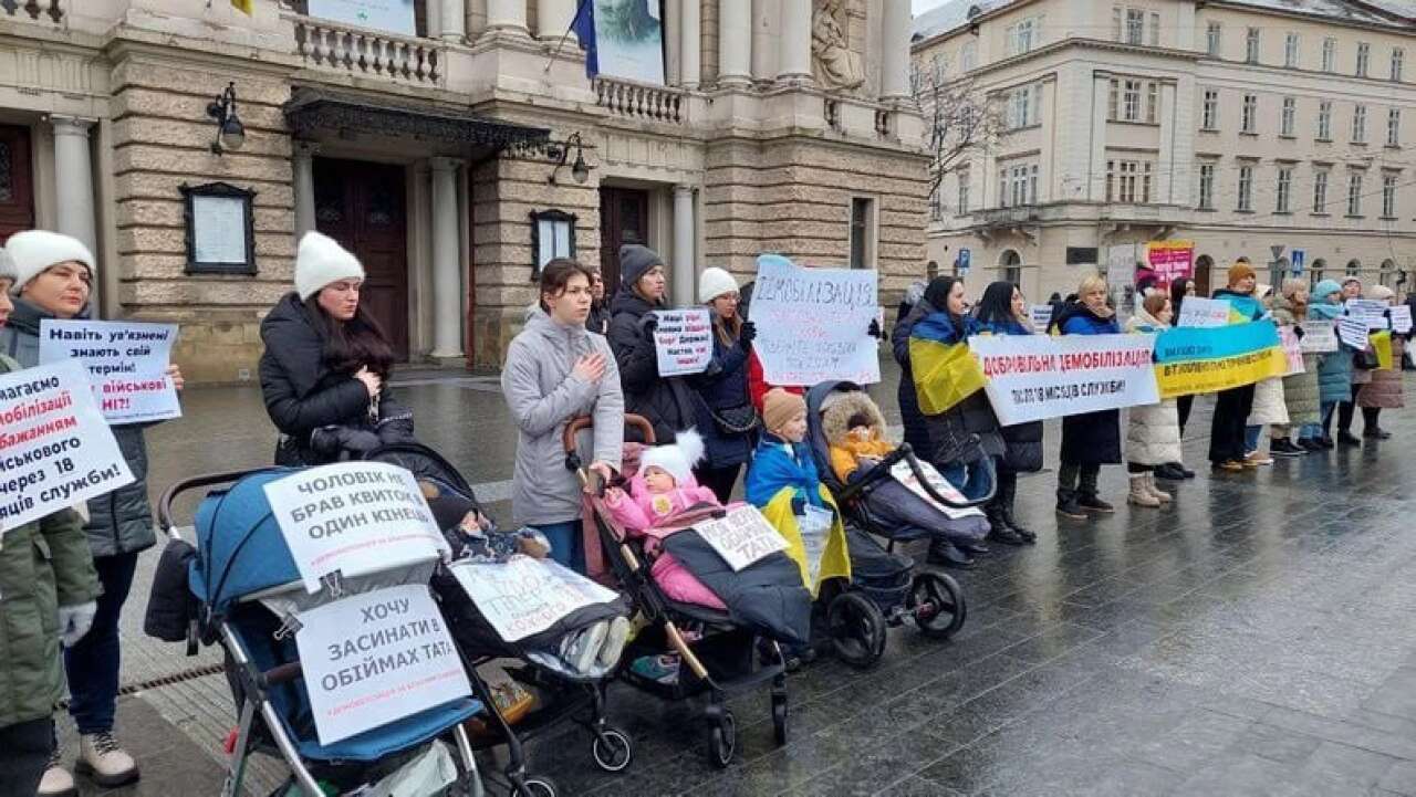 У Львові жінки принесли плакати із написами "Справедливий термін служби", "Чому воюють одні й ті самі?", "Чоловік не брав квиток в один кінець" тощо. За словами поліції, на пікет зібралося понад три десятки учасниць.