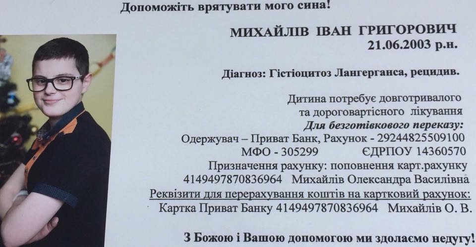 14-річному Івану Михайліву з Глибівки, що на Богородчанщині, потрібна допомога у боротьбі з рідкісною хворобою.