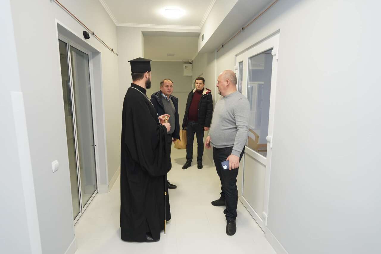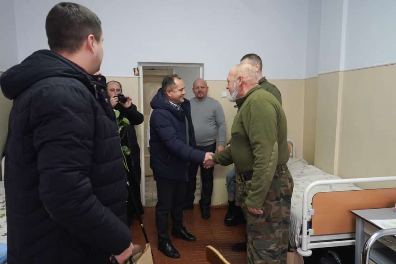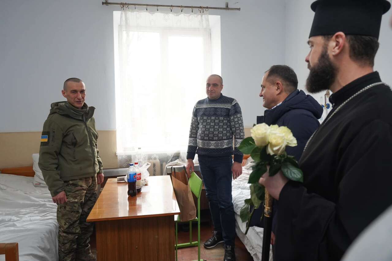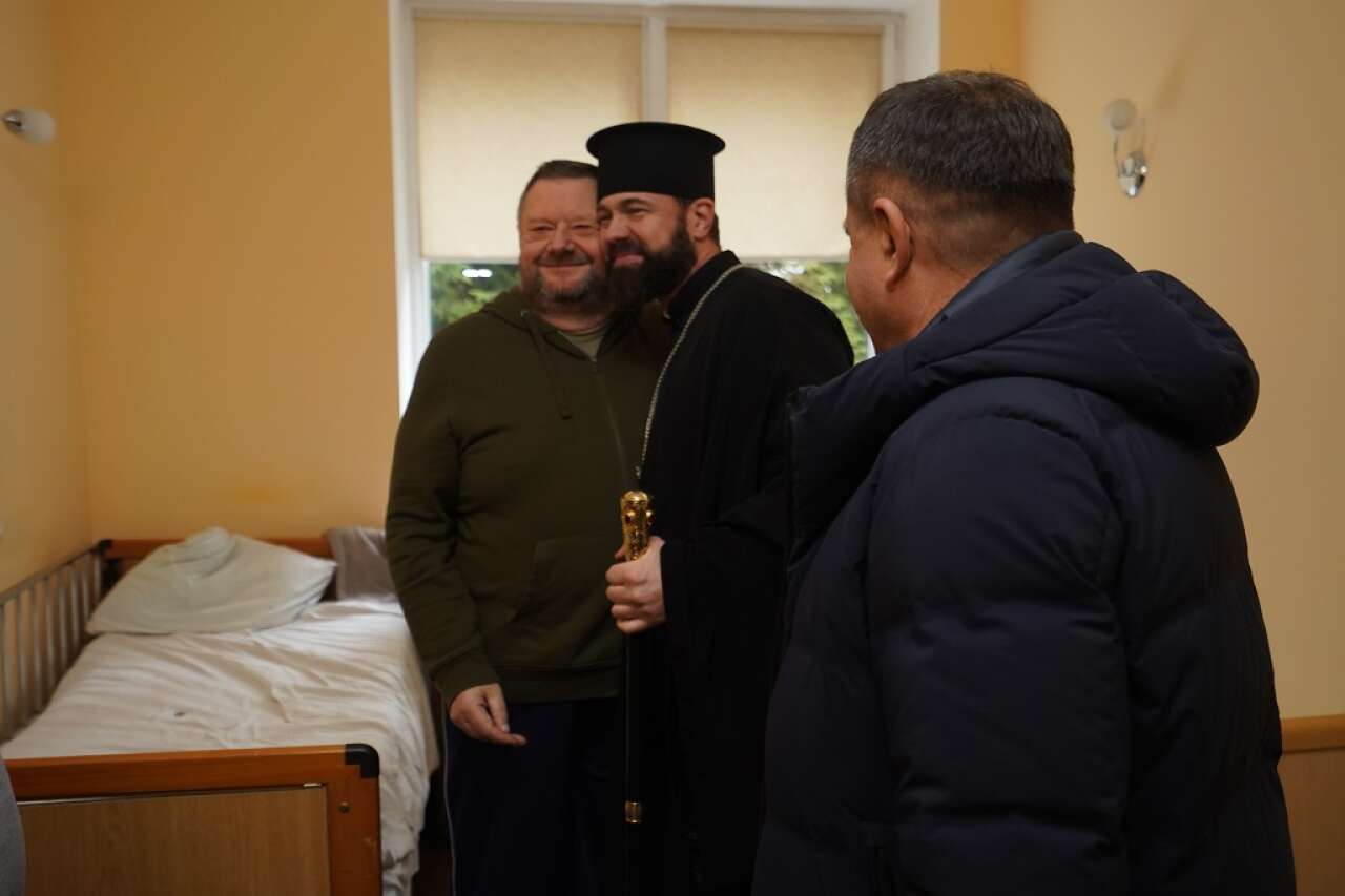 Перед тим, як провідати в палатах військовослужбовців, Його Преосвященство та міський Голова Богдан Станіславський поспілкувались із директором медичного закладу Володимиром Федоришиним, медпрацівниками та медперсоналом. Володимир Євгенійович розповів гостям про діяльність медичного закладу та показав нове медичне обладнання.