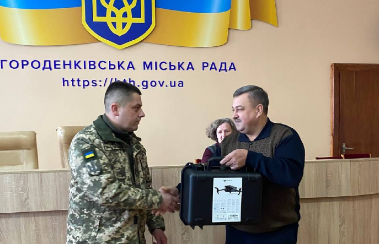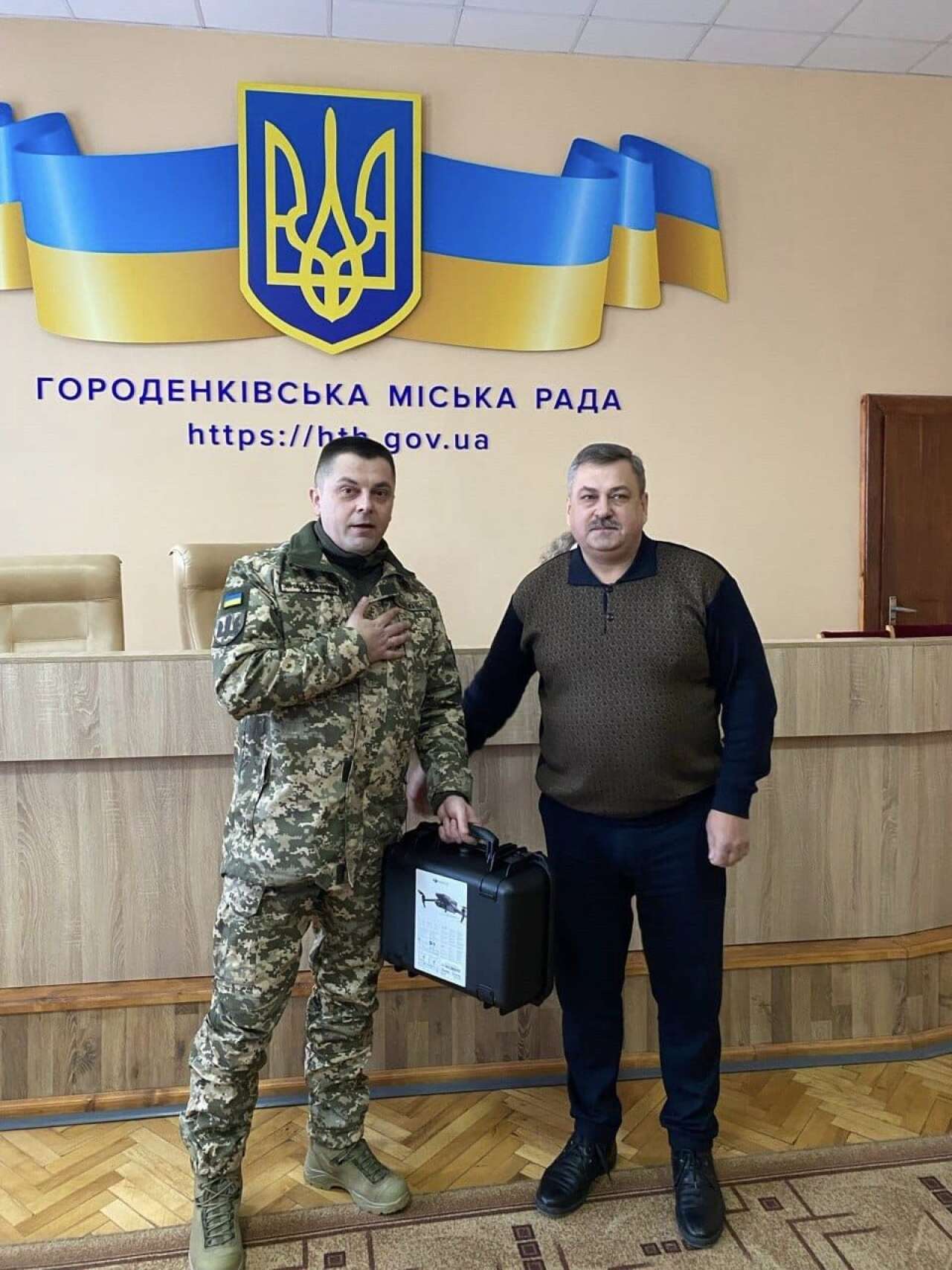 Сьогодні на засіданні виконавчого комітету голова Городенківської громади Богдан Кобилянський вручив воїнові Мирославу Королю квадрокоптер Dji Mavic 3T, придбаний за кошти міської ради.