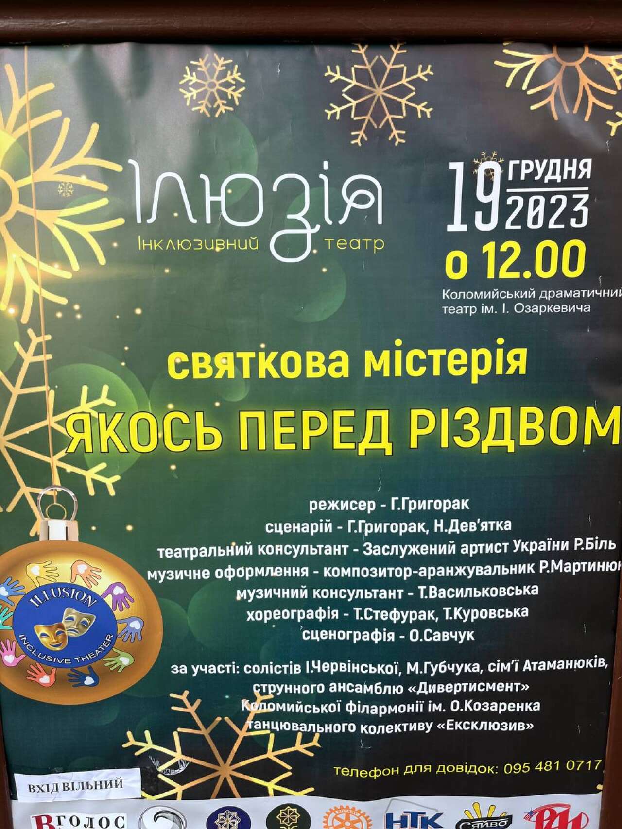 У неперевершеному амплуа коломийського драматичного театру Озаркевича розцвіла справжня святкова містерія "Якось перед Різдвом", де в головній ролі виступив інклюзивний театр "Ілюзія". Вистава, що відбулася 19 грудня, перетворила театральний простір у величезну казку за участю талановитих дітей та особливих акторів.