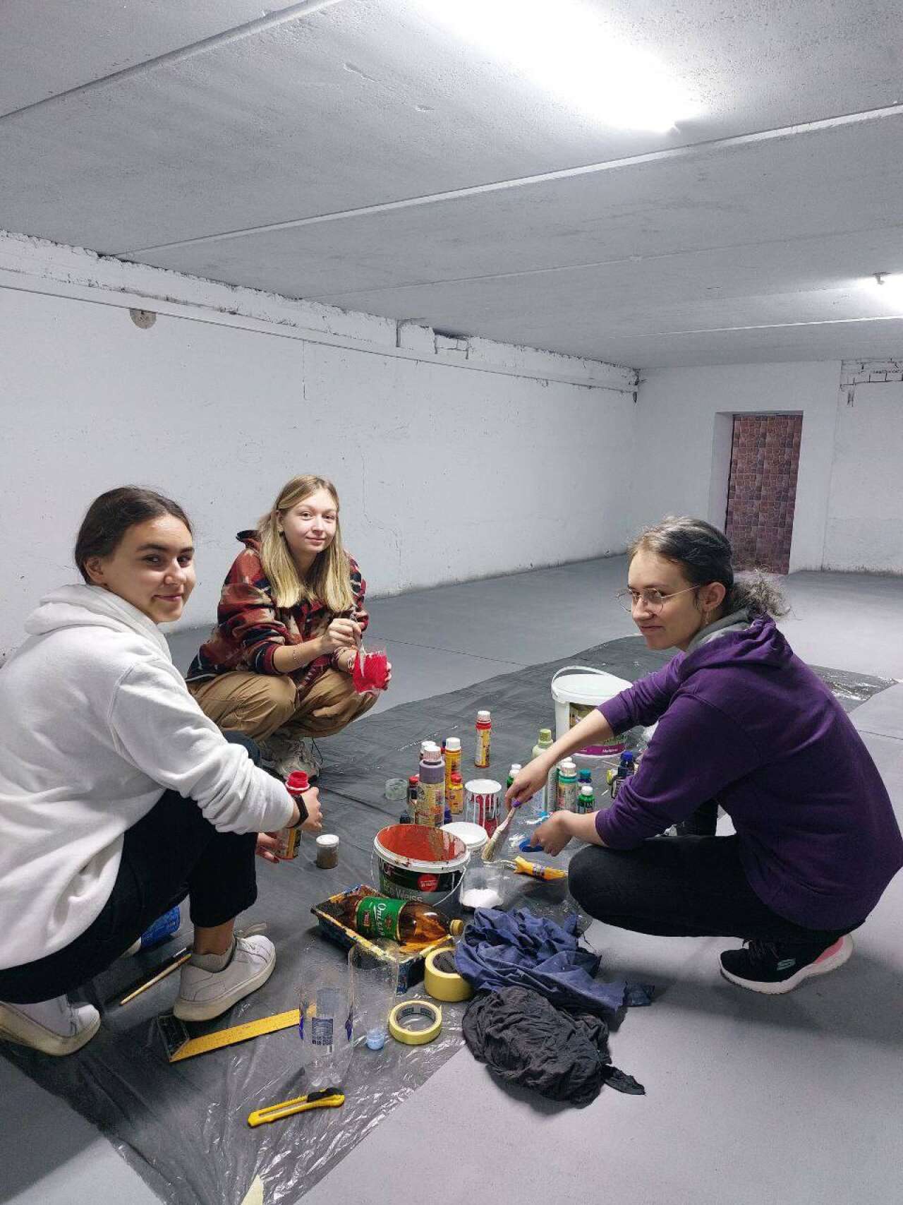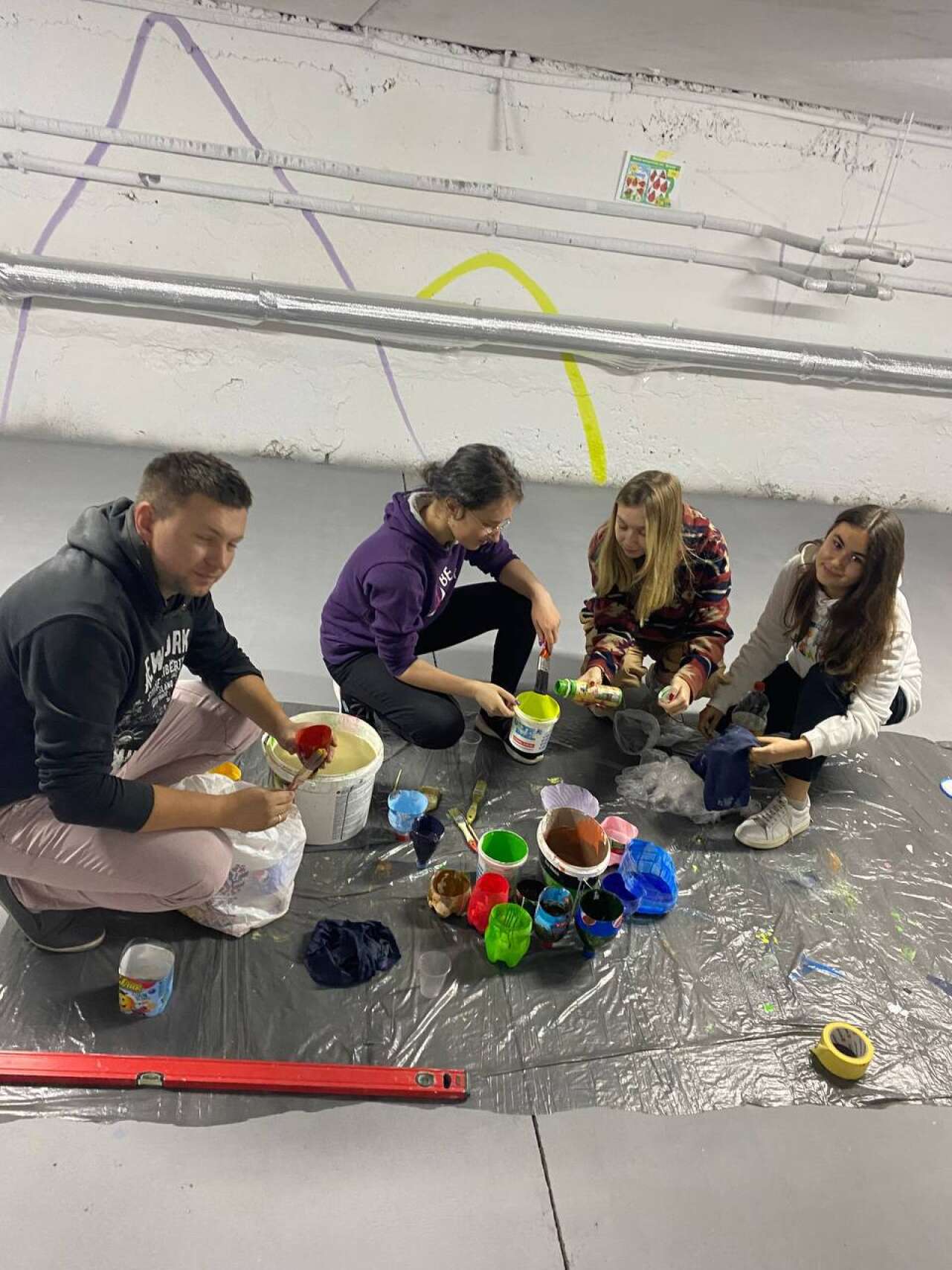 «Створюючи розвивальний простір у сховищі, ми намагалися не лише урізноманітнити інтер’єр для малят, а й допомогти таким чином діткам опанувати кольори та цифри, українські й англійські літери. Також намалювали годинник, аби діти могли вчитися орієнтуватися в часі», – розповідає студентка.