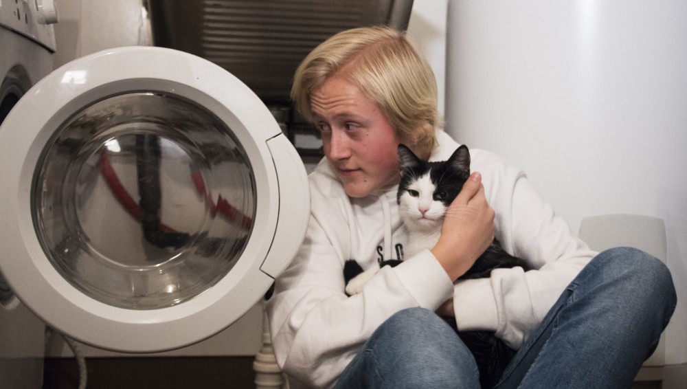 За версію видання, кіт проскочив у барабан у той момент, коли дверцята машинки закривали для завантаження білизни. 14-річний хлопчик Йоакім знайшов кота після 40 хвилин прання.