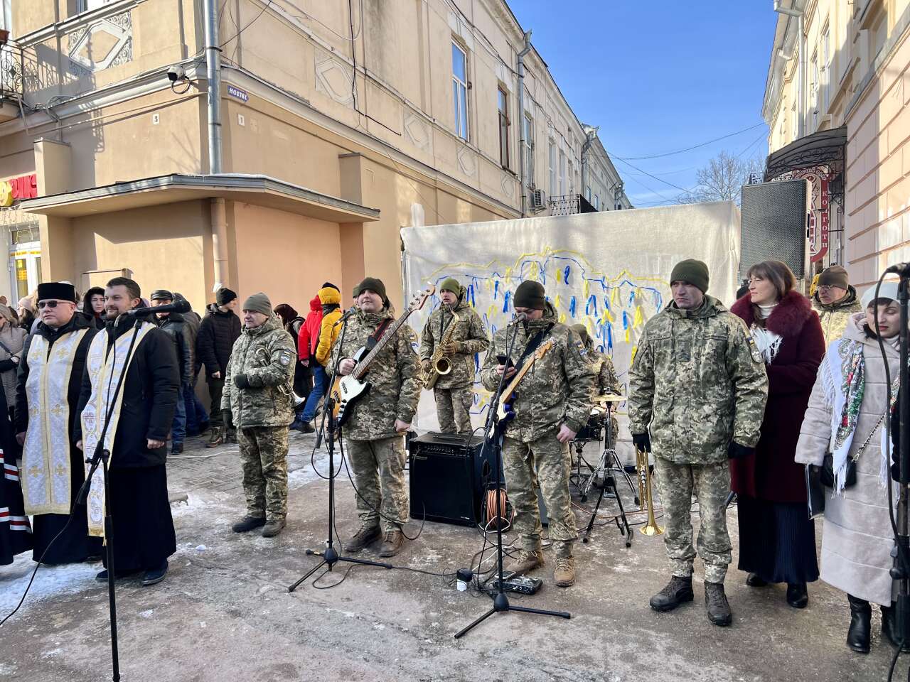Народний хор «Просвіта» разом з військовими зігрівали учасників піднесеним виконанням гімну ОУН «Зродились ми великої години»