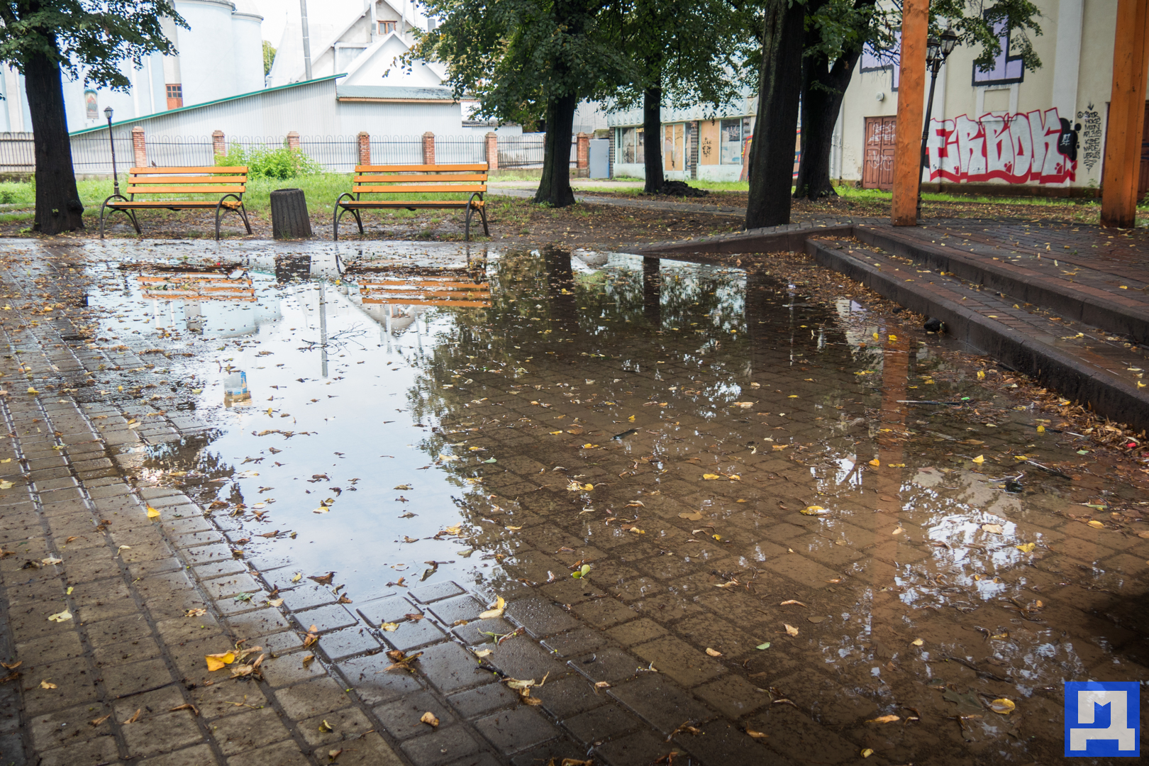 Під час дощів дороги коломийських вулиць перетворюються на озера.