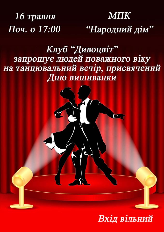 Клуб "Дивоцвіт" запрошує коломиян поважного віку і всіх охочих відвідати танцювальний вечір, присвячений Дню вишиванки.