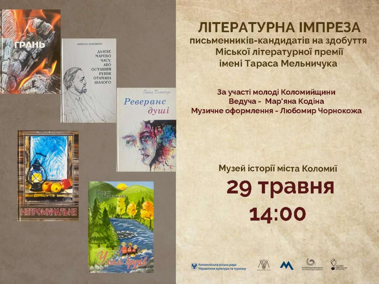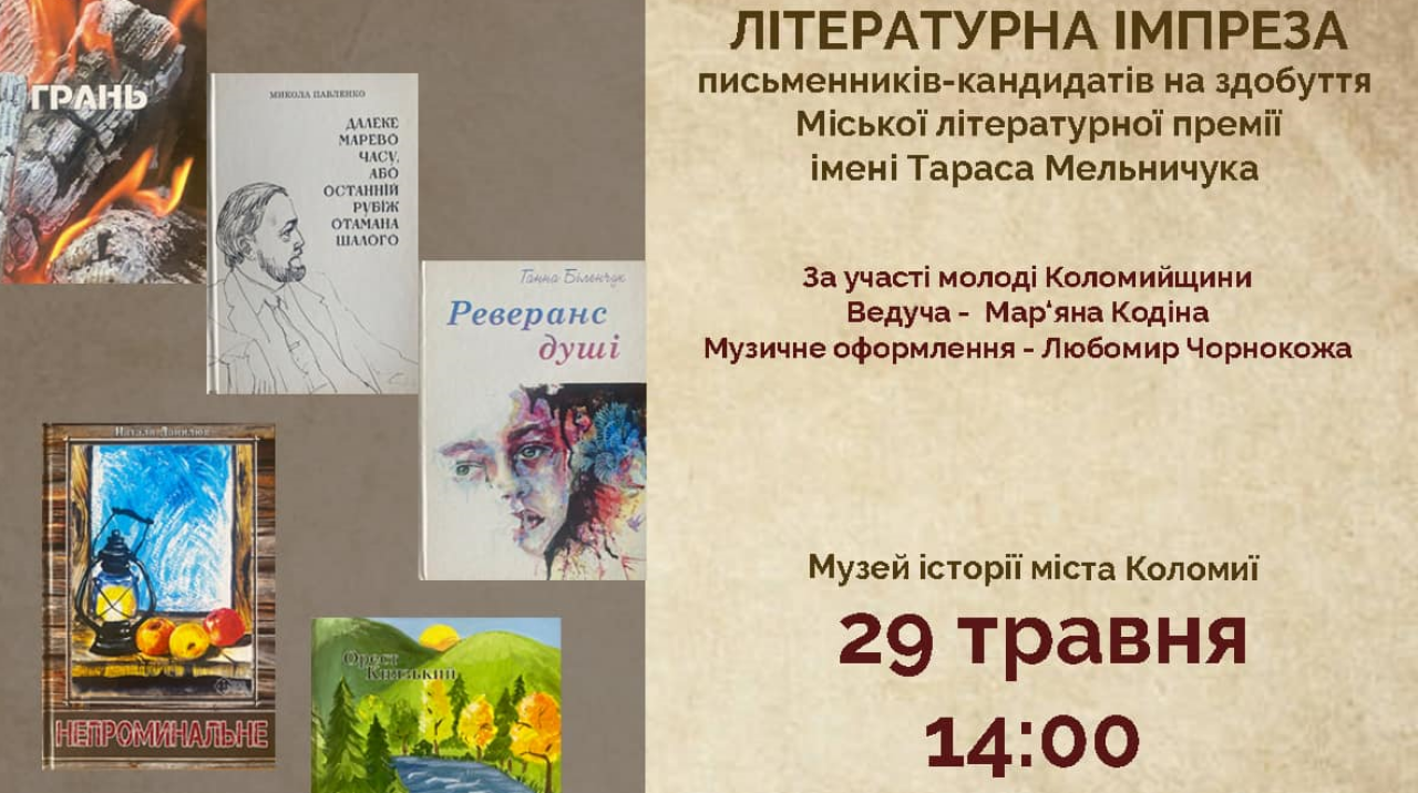 Презентація книг цьогорічних письменників-кандидатів на здобуття Міської літературної премії імені Тараса Мельничука відбудеться 29 травня о 14:00 год. в Музеї Історії міста Коломиї