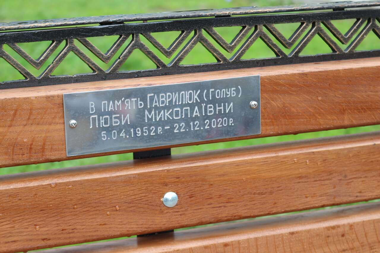 "Так і з’явилась меморіальна лавочка біля ліцею №1. Вона красива та ошатна, з вигравіюваними словами «в пам’ять Гаврилюк (Голуб) Люби Миколаївни 5.04.1952р – 22.12.2020р».