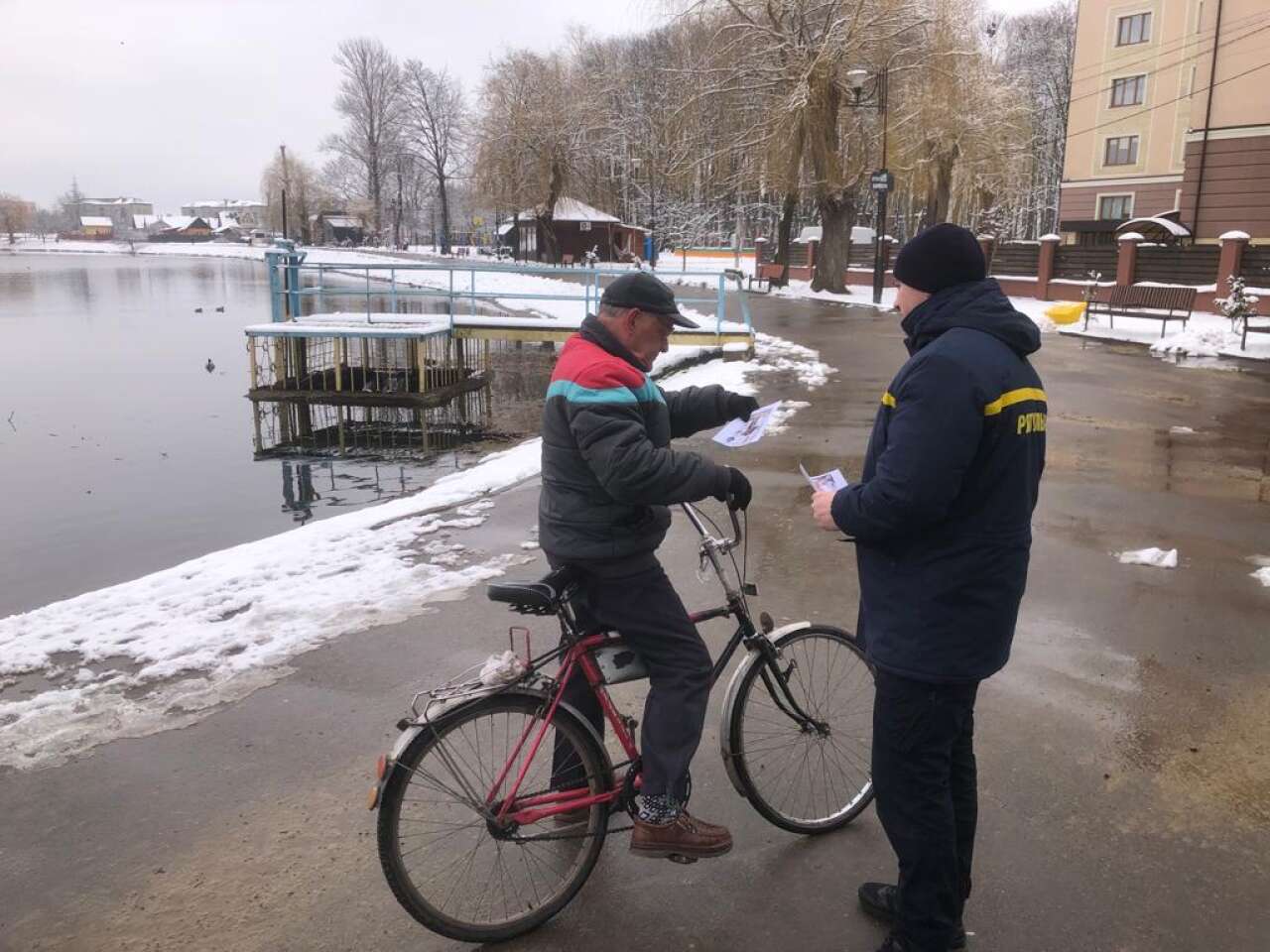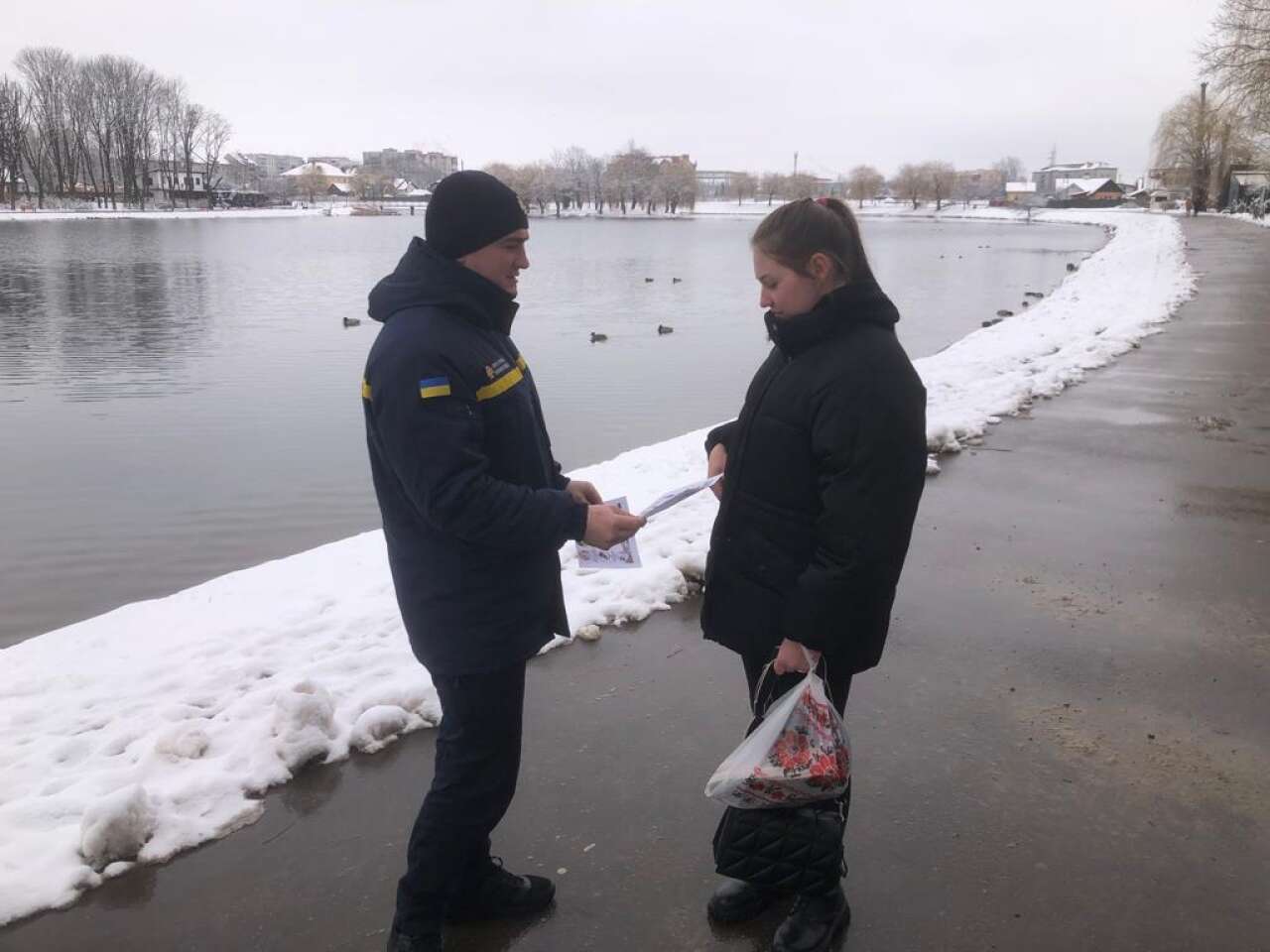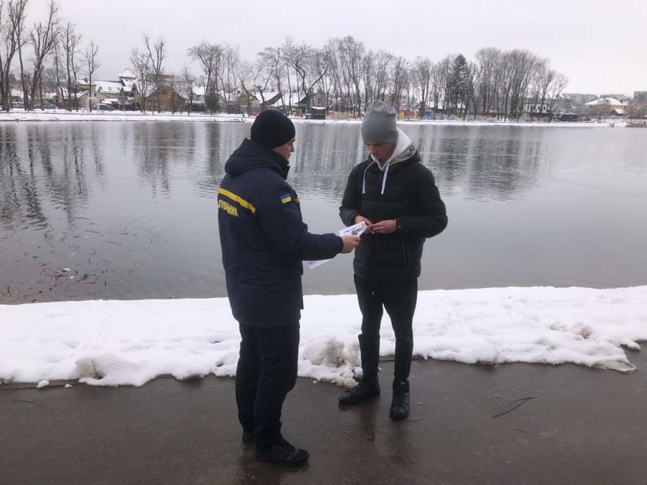 Для того, щоб запобігти нещасним випадкам, 28 лютого коломийські рятувальники провели профілактичні рейди поблизу міського озера. Насамперед розповіли, що безпечним вважається лід товщиною не менше 7 сантиметрів; для обладнання ковзанки - не менше 10-12 сантиметрів (масове катання - 25 сантиметрів); масова переправа пішки може бути організована при товщині льоду не менше, ніж 15 сантиметрів.