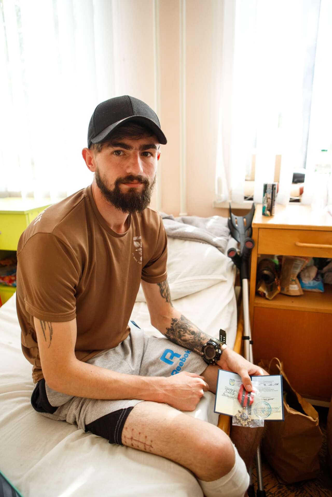 Керівниця області поспілкувалася з пораненими захисниками, а одному з них - командиру відділення розвідувального взводу 10-ої окремої гірсько-штурмової бригади «Едельвейс» Віктору Шатруку - передала нагрудний знак «Золотий хрест» від Головнокомандувача Збройних сил України Валерія Залужного.