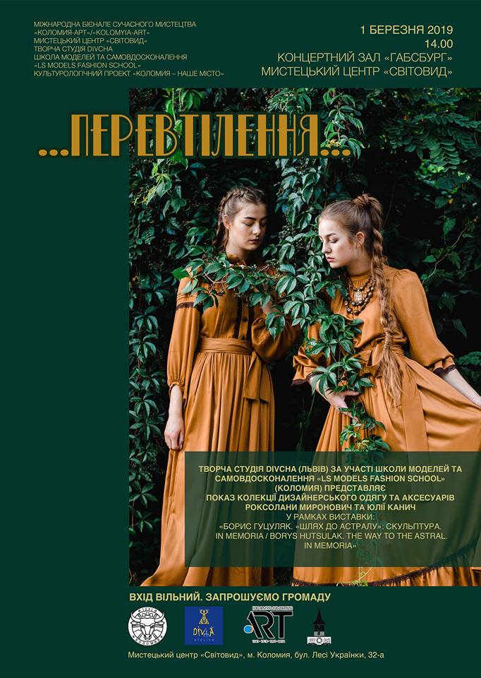 Показ колекції дизайнерського одягу та аксесуарів Роксолани Миронович та Юлії Канич "Перевтілення". Початок о 14 год.