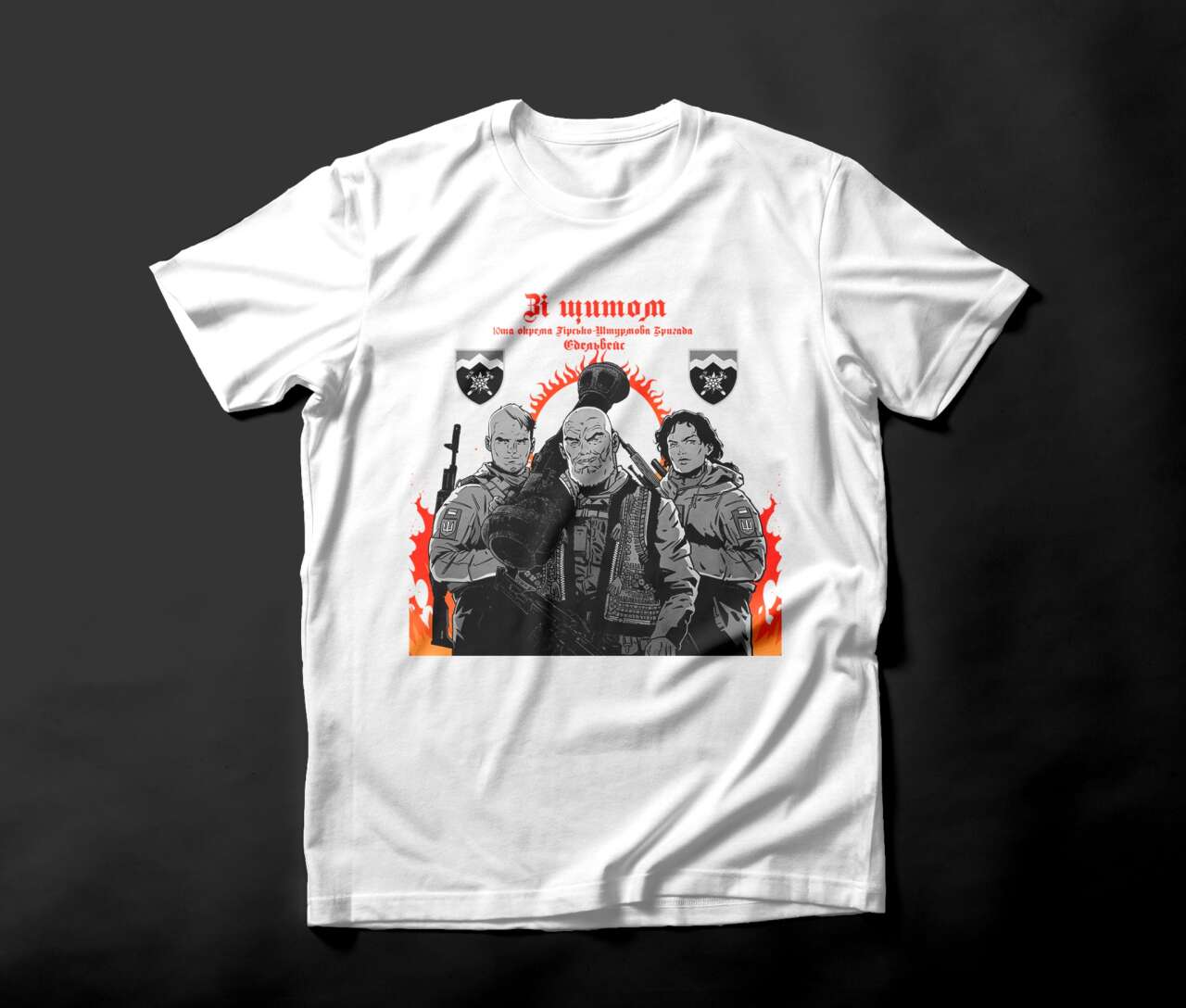 Всі гроші з продажу футболок спрямують на підтримку легендарних бійців 10 окремої гірсько-штурмової бригади «Едельвейс».