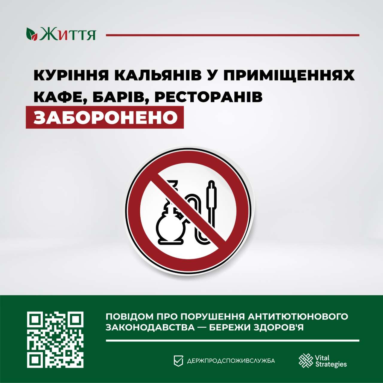Саме тому куріння кальянів, як і тютюнових виробів, електронних сигарет і пристрої для нагрівання заборонене в приміщеннях установ та організацій будь-якої форми власності, зокрема й у кафе, барах, ресторанах.