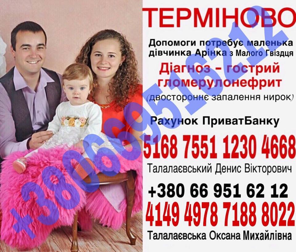 Будь ласка, не відвертайтесь від такої великої біди маленької дівчинки! Давайте допоможемо маленькій Арінці!