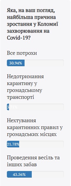 На нашому сайті завершилося опитування "Яка, на ваш погляд, найбільша причина зростання у Коломиї захворювання на Covid-19?".