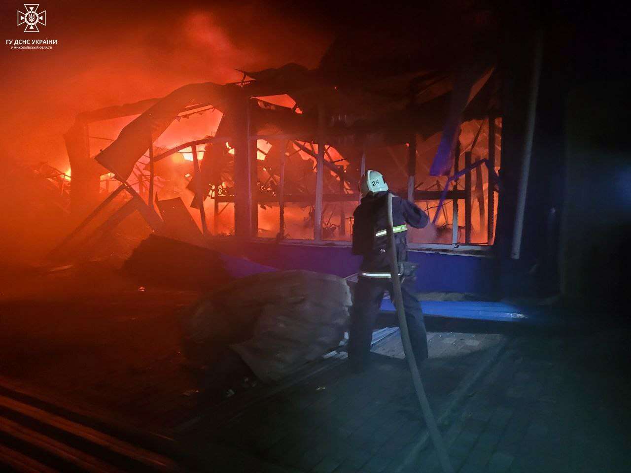 Сьогодні опівночі у Баштанському районі внаслідок влучання БпЛА виникла пожежа магазину. Пошкоджено склади сільськогосподарського підприємства. Травмувань зазнав охоронець магазину, якого госпіталізовано до медичного закладу. Площа пожежі склала 600 кв. м. Станом на ранок 31 січня пожежу ліквідовано.