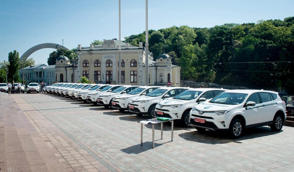 "Сьогодні 40 сучасних і економічних, енергозберігаючих автомобілів марки "Toyota RAV 4 2,5 Hybrid, E-AWD", оснащених бензиновим та електронним двигунами, поїхали по територіальним та міжрегіональним територіальним органам
