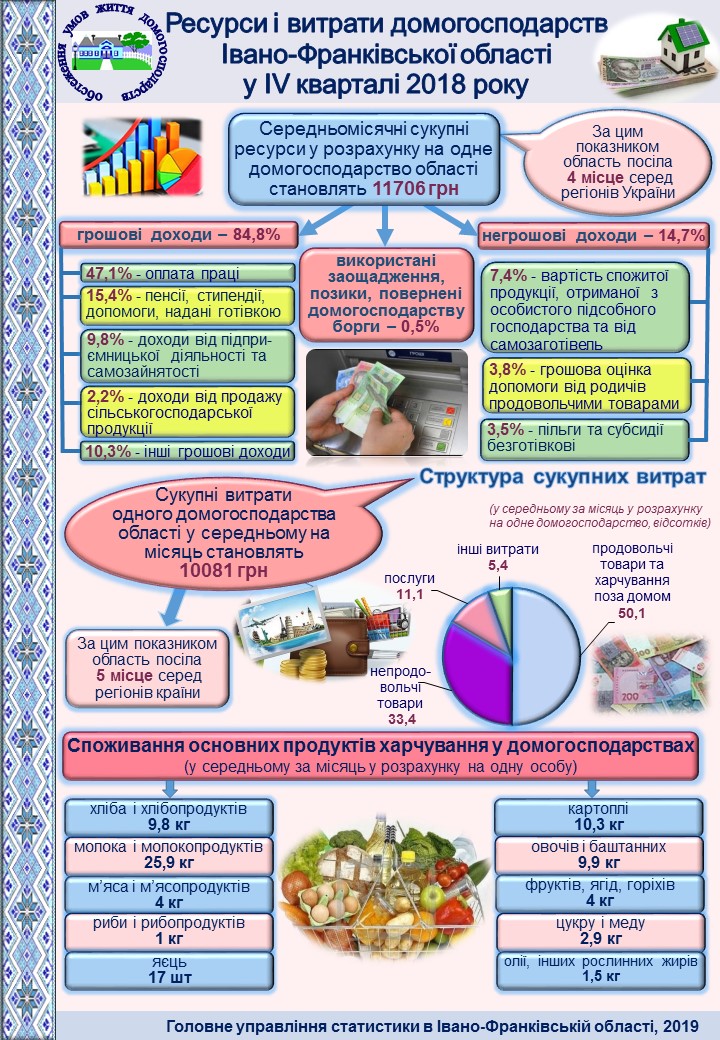 Головне управління статистики в Івано-Франківській області провело дослідження ресурсів і витрат домогосподарств області.