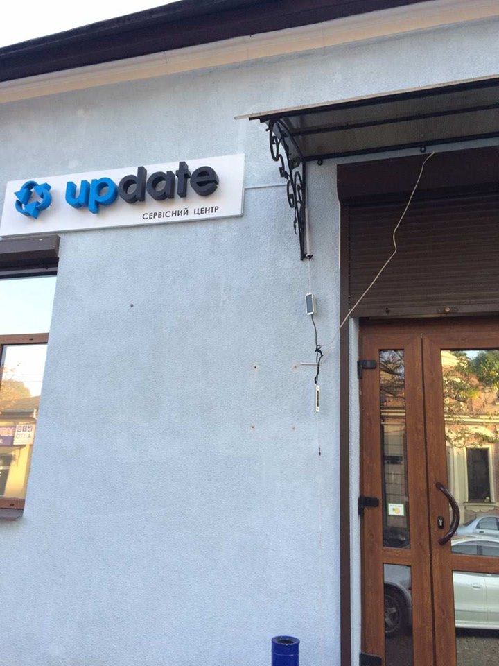 Вночі з 19 на 20 жовтня з франківського сервісного центру "UpDate" хулігани зірвали дорогу вивіску.