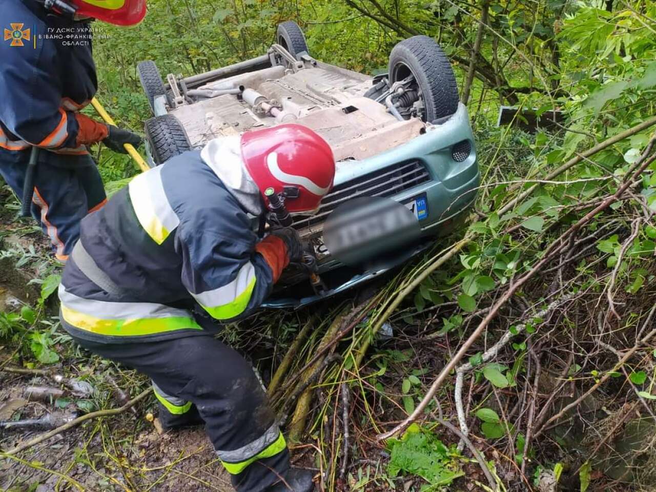 Прибувши до місця виклику, рятувальники відключили клеми акумуляторної батареї автомобіля з метою запобігання загоранню.