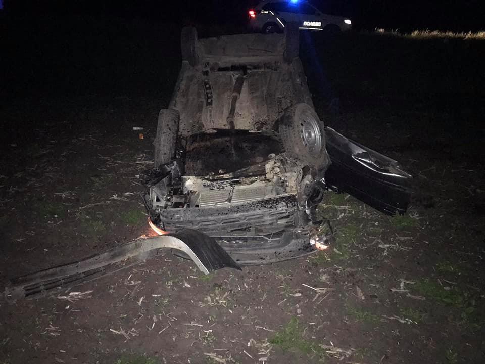 Внаслідок зіткнення автомобіль перекинувся на дах. У результаті аварії водій загинув на місці.