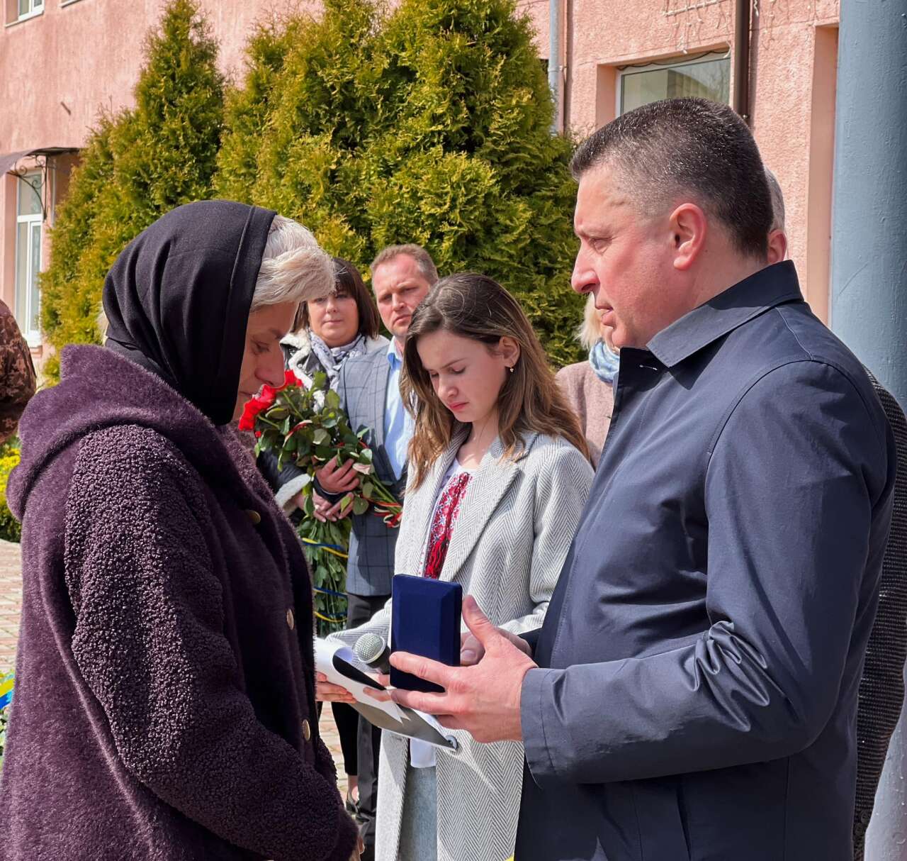 За дорученням голови обласної державної адміністрації - начальника обласної військової адміністрації Світлани Онищук її заступник Віталій Ільчишин вручив найвищу нагороду області – медаль «За заслуги перед Прикарпаттям» родині загиблого Дмитра Коцюбайла.