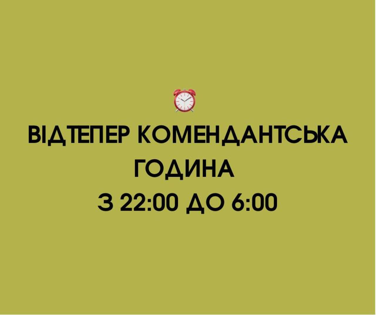 Відтепер комендантська година на території області триватиме з 22:00 до 6:00, повідомила Світлана Онищук, голова Івано-Франківської ОДА.