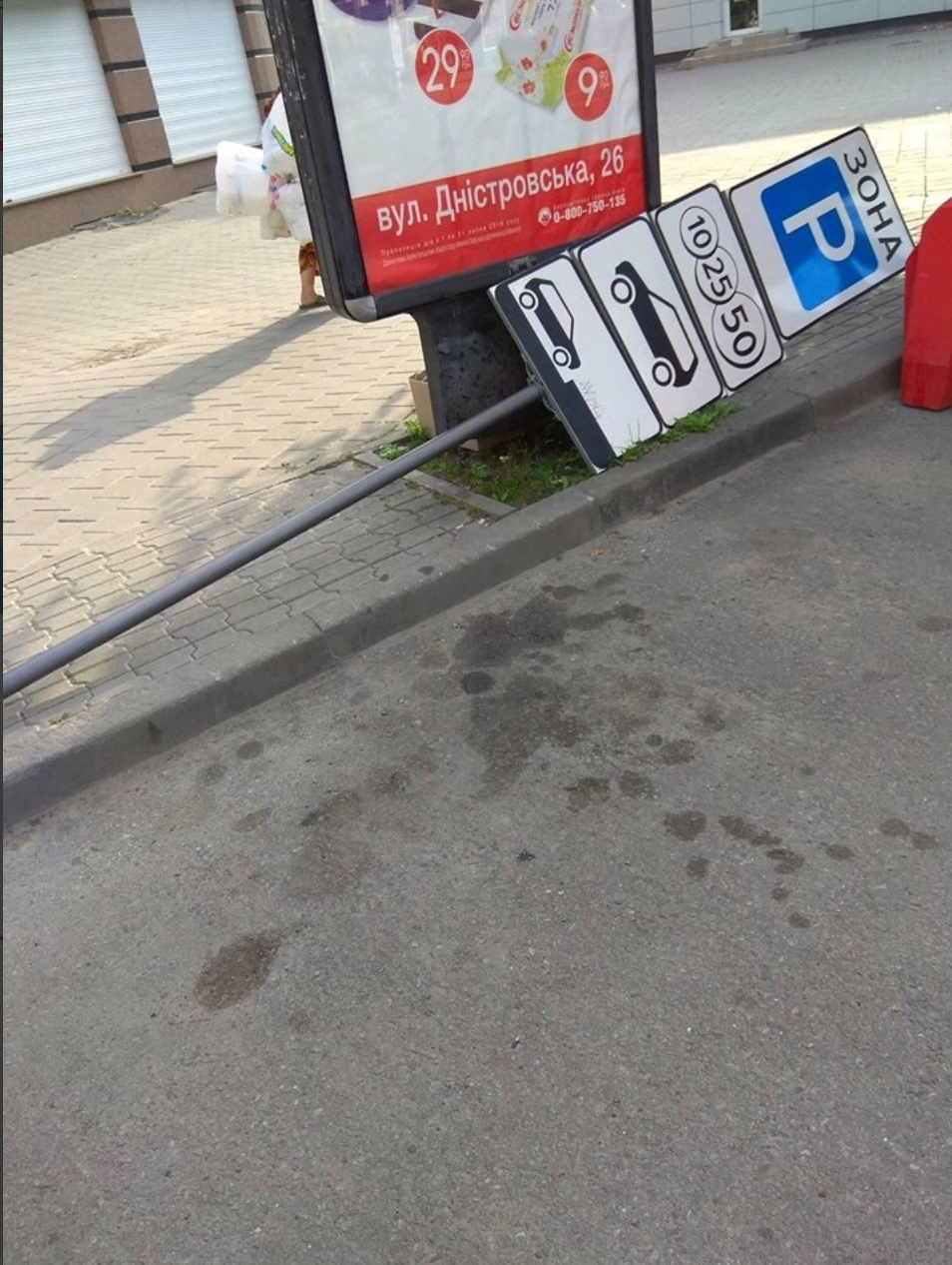 Зокрема, дорожні знаки понищили по вулиці Галицька-Дністровська.