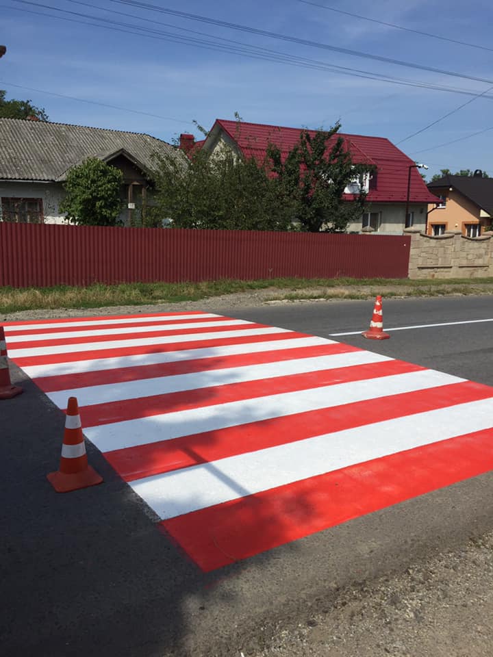 Так пішохідні переходи нанесли на Коломийщині на автодорозі Р-24 Татарів - Кам'янець-Подільський, повідомили сьогодні в САД області.
